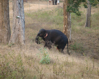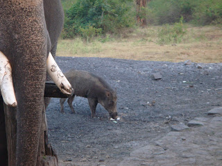 How does it matter to them that I don't have a camera that can take all their poses? They're the owner of their moods and I'm only to adjust with them. वे लोग अपनी मर्जी के मालिक होते हैं भई. Anyhow, I could go to this extent, all at Mudumalai. The notice board at the tourist office says somebody had sighted a tiger on 17-1-2012. Should I believe it? In fact once, only once in my life I had seen a tiger crossing my road. And that's all. I've bragged it on my blog at an old post, you might like to visit the link too.