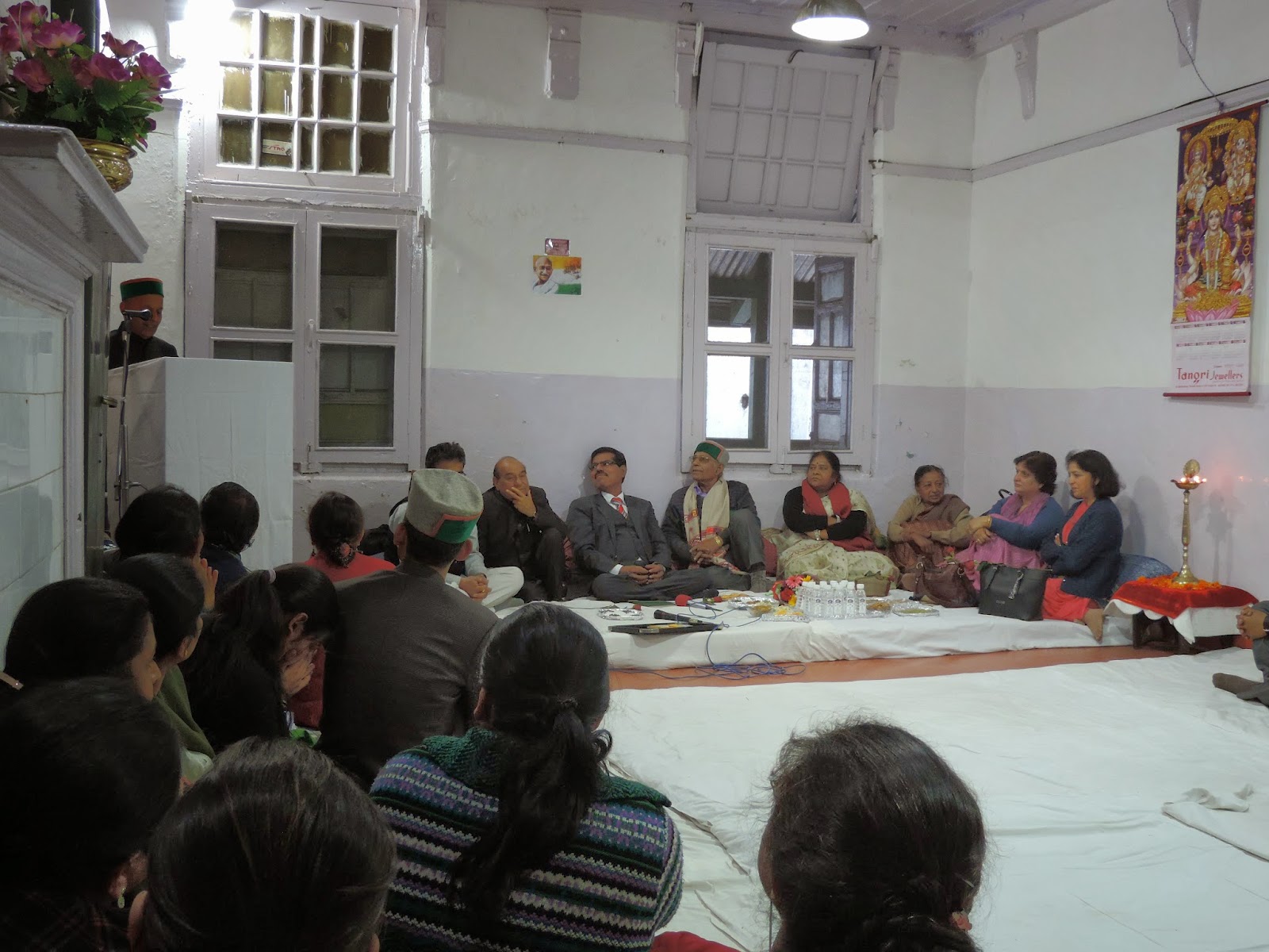 Today we had a wonderful poetic evening amidst talented poets, a kavi sammelan. I had my contribution too. This time my poem did not come out of the cauldron of translation. It is a direct composition in Hindi. I enjoyed writing it and then reciting it amidst applause; but I must say the more soul-stirring experience to me was to listen to others. Dr Nandkishore Nandan, the revered chief guest was at his best, as always. He was transformed into a 70-year young, the captain of the street cricket team playing at Ridge Shimla stirring his muse to produce the freshest poem in his repertoire. He had romantic and rebellious poems too, his heart weeping in pain seeing mother Nature disregarded, over-exploited and fast heading towards an ominous future; the condition of deprived sections of the society going from bad to worse every passing day. Dr Saraswat had the grace of a poet in all his gestures, not only restricted to the words and expressions he used in his nice poems of spiritual theme. Dr Usha Bande had an English poem to render--so full of sensitivity, struggle and hope! Dr Pankaj Kapoor had a awesome simile to depict the trivialisation in human relationship: there's no iron in our blood so that the magnet of human warmth can attract us each other. How true! Mr Ratiram Sharma had his muse drawn from the herdsman of Himalayas who have hard lives to live but leaving the footprints of wisdom behind them everywhere they moved. Madam Sangeeta recited a poem that sparked in her mind finding winter this year so obstinately prolonging even up to the end of March, one that slightly matched my last post, not in words but in spirit. Poets of Shimla feel and think alike! it was a wonderful evening at the end of the day.